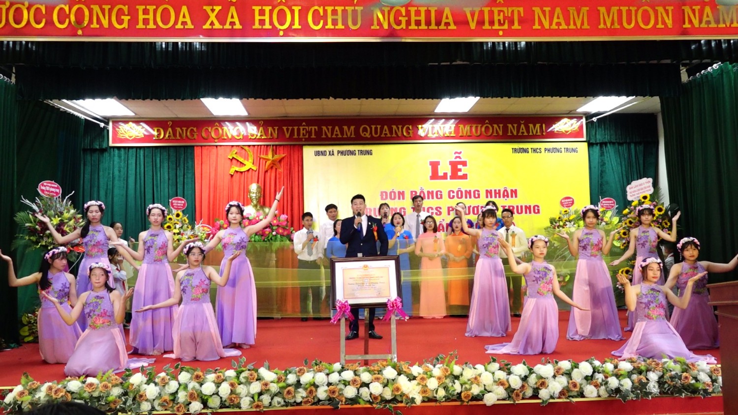 Ghi nhận sự phấn đấu bền bỉ và đạt hiệu quả cao của nhà trường, Ủy ban nhân dân Thành phố Hà Nội đã ra Quyết định công nhận trường Trung học cơ sở Phương Trung đạt chuẩn Quốc gia- Mức độ 1. Đây là niềm vinh dự, tự hào, sự động viên khích lệ to lớn đối với toàn thể cán bộ giáo viên và học sinh toàn trường. Theo cô giáo Phạm Thị Kim Hoa, phấn đấu xây dựng trường chuẩn Quốc gia đã khó, giữ vững trường chuẩn Quốc gia lại càng khó hơn. Vì vậy, cô khẳng định, trong thời gian tới, nhà trường sẽ tiếp tục tập trung đổi mới quản lý giáo dục, nâng cao trình độ chuyên môn nghiệp vụ cho đội ngũ giáo viên; đổi mới phương pháp dạy học từ đó nâng cao chất lượng giáo dục đào tạo toàn diện; xây dựng trường Trung học cơ sở.